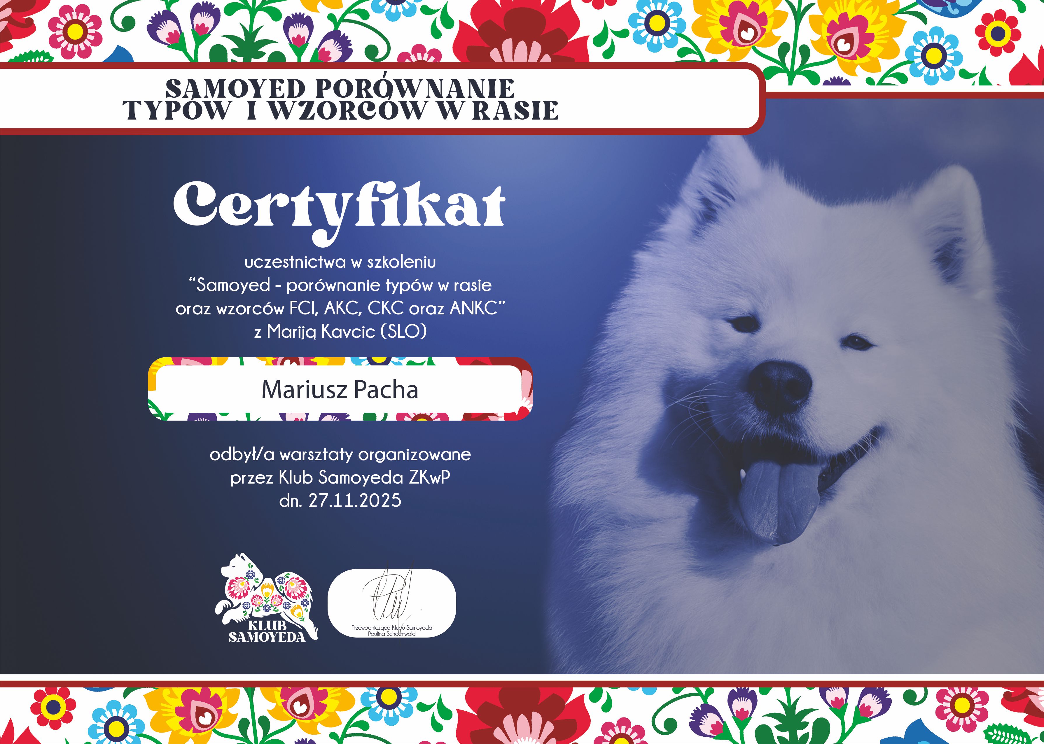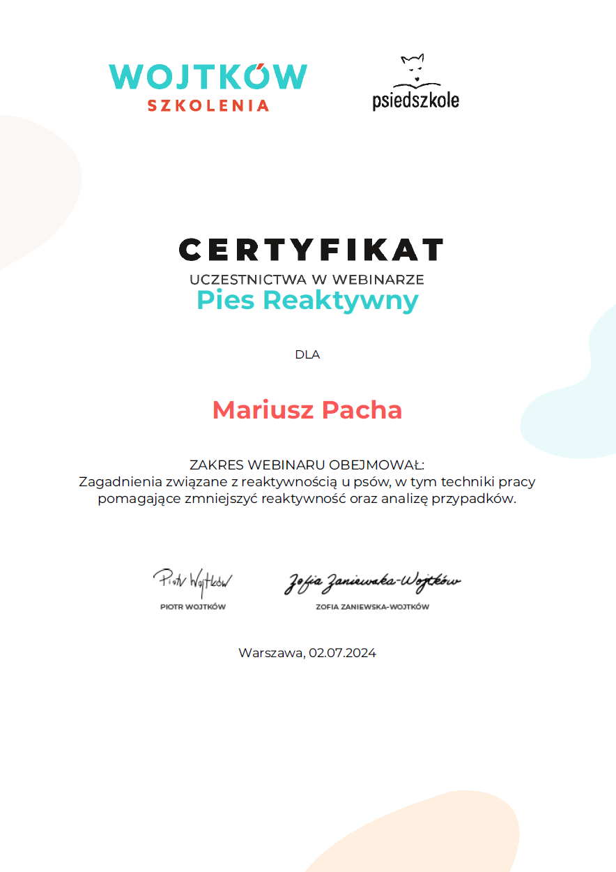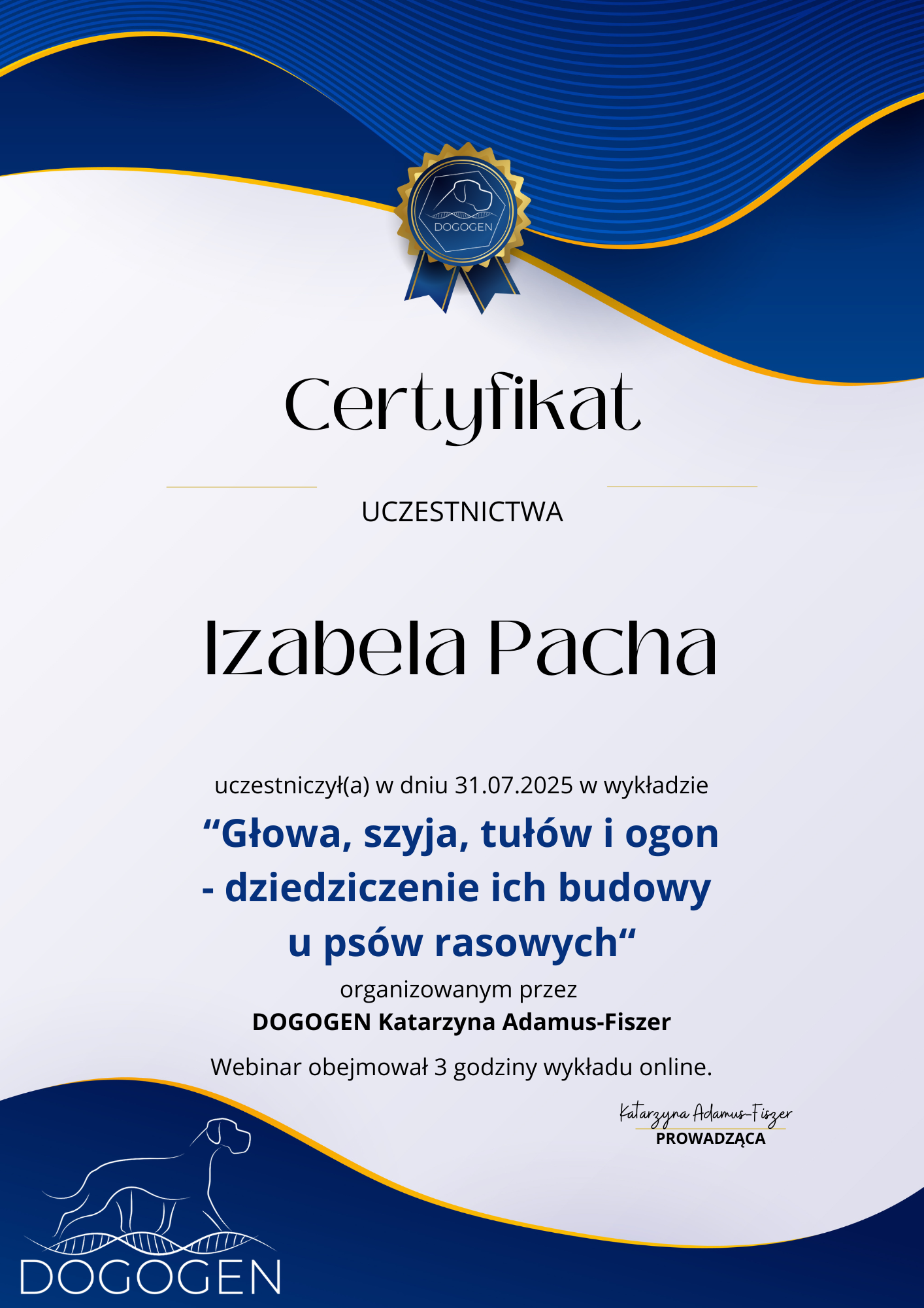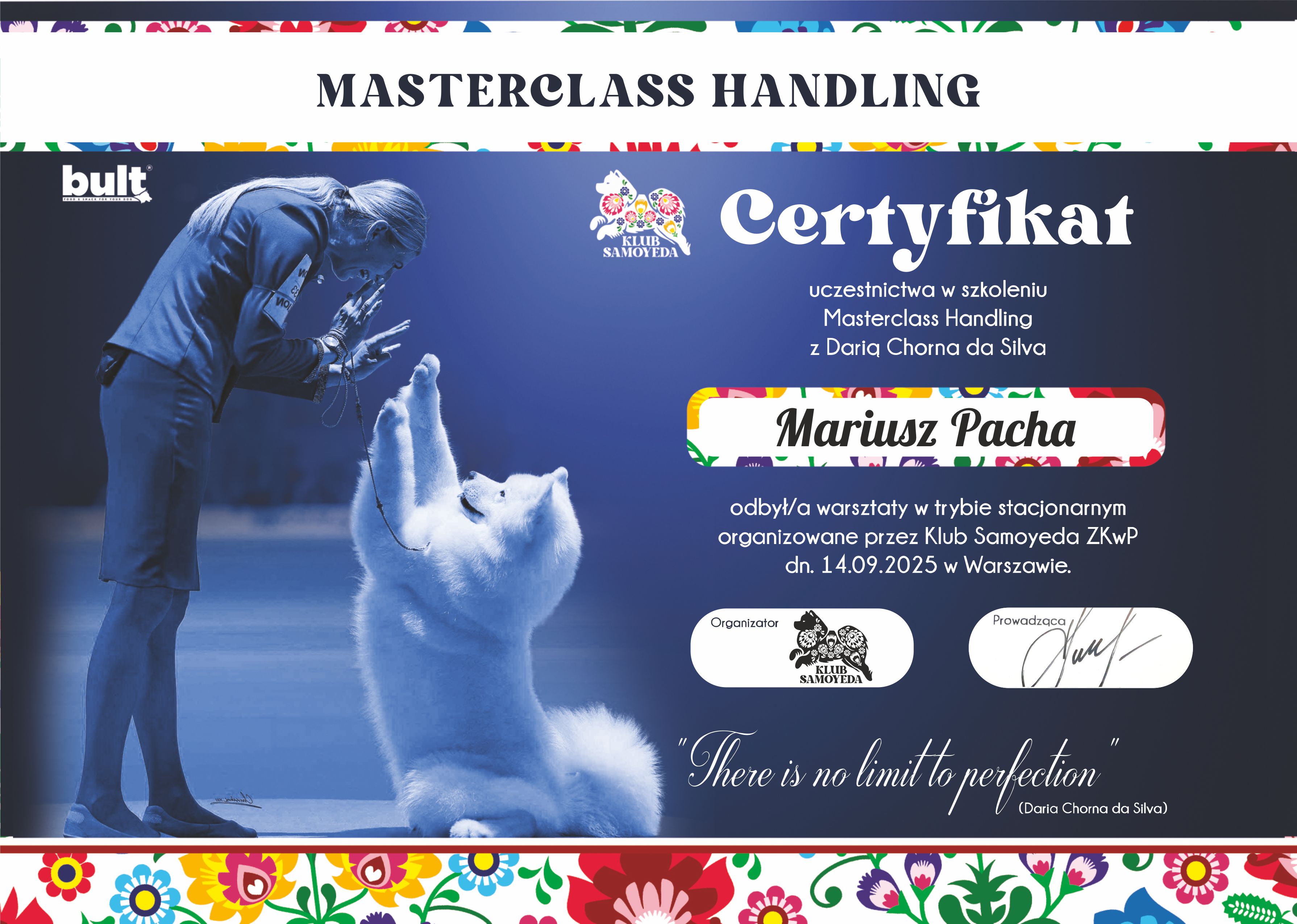 Szkolenia są nieodłącznym elementem prowadzenia hodowli. W każdej wolnej chwili korzystamy z możliwości poszerzania swojej wiedzy zarówno pod kątem trenerskim, behawioralnym, genetycznym, anatomiacznym aby świadomie podejmować decyzje związane z naszą hodowlą jak i być wsparciem dla właścicieli naszych szczeniąt.