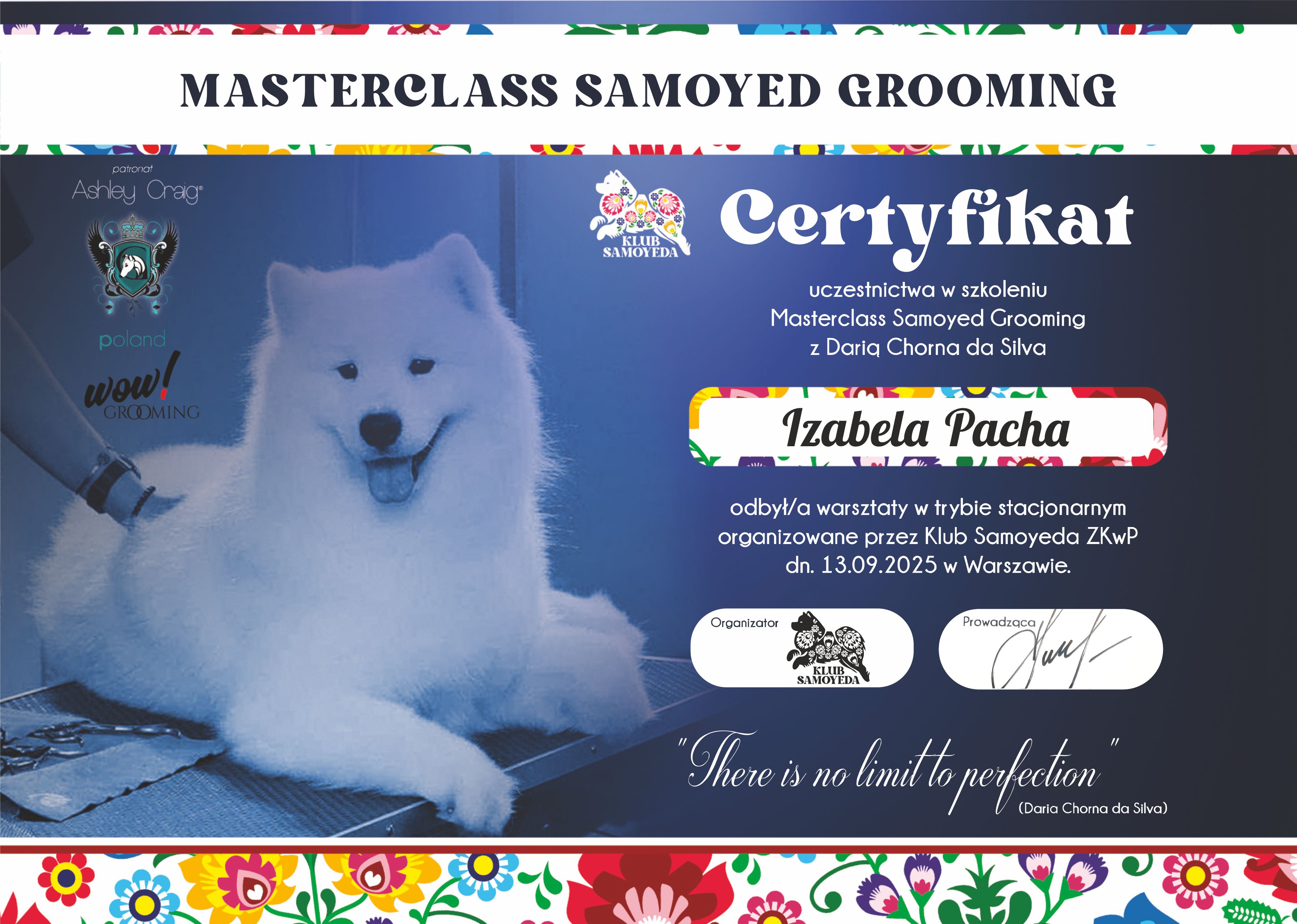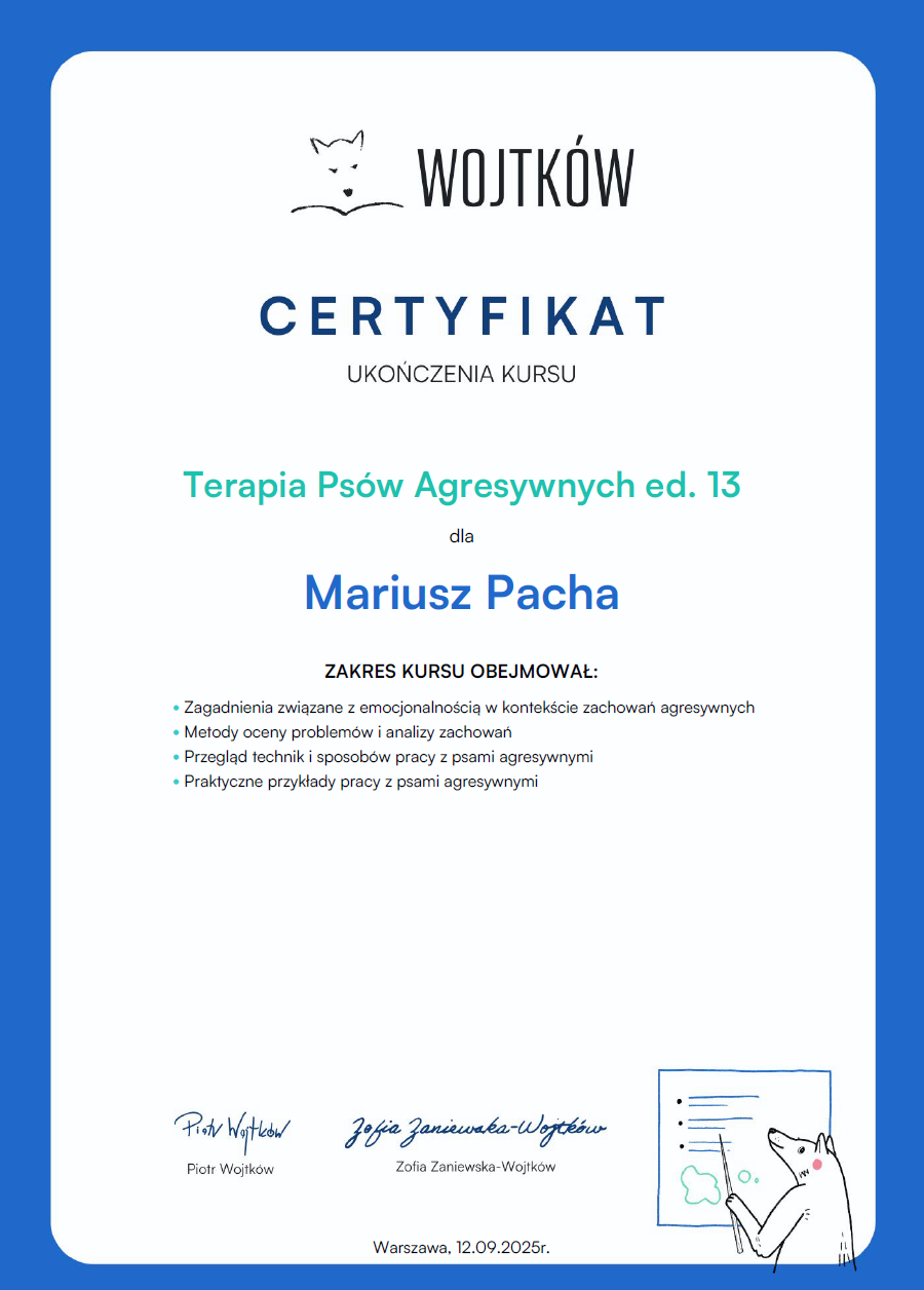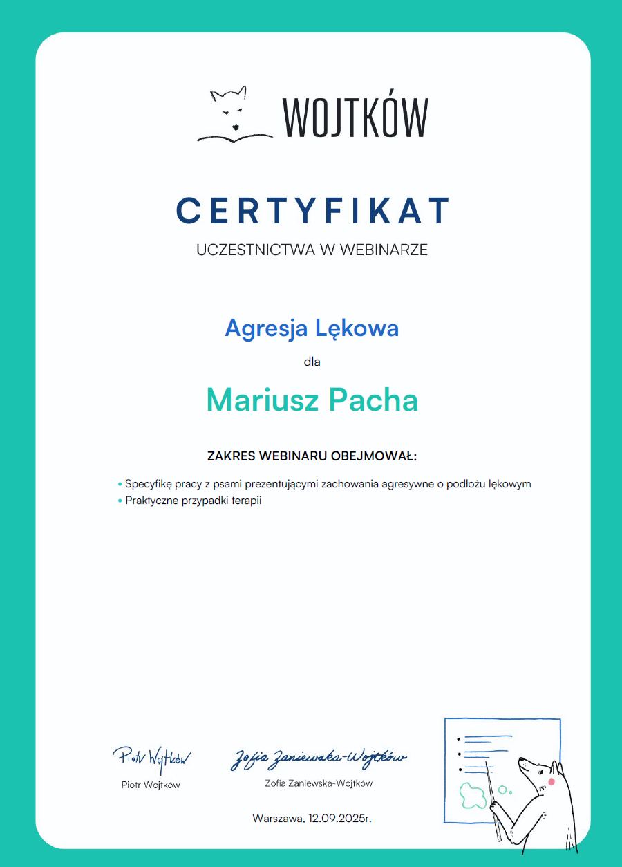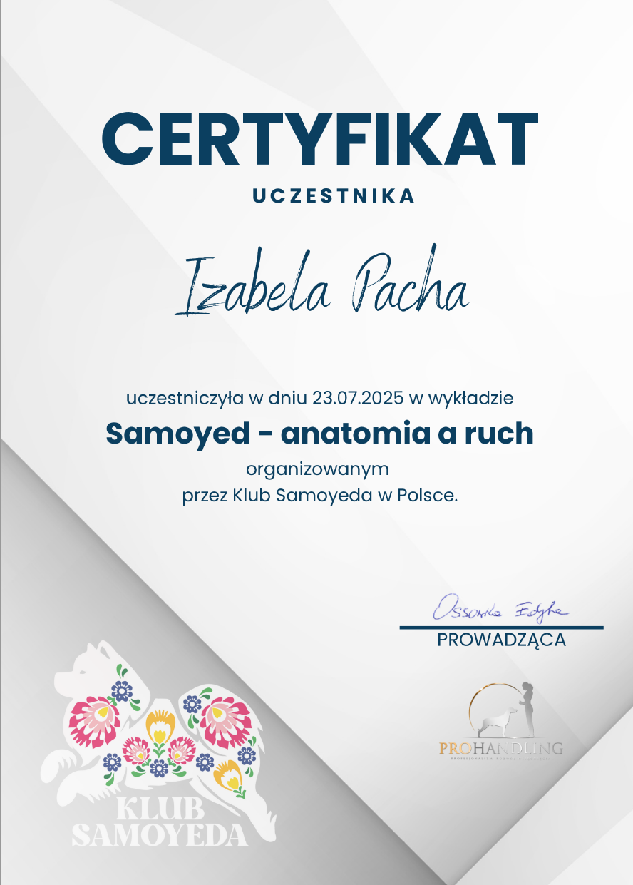 Szkolenia są nieodłącznym elementem prowadzenia hodowli. W każdej wolnej chwili korzystamy z możliwości poszerzania swojej wiedzy zarówno pod kątem trenerskim, behawioralnym, genetycznym, anatomiacznym aby świadomie podejmować decyzje związane z naszą hodowlą jak i być wsparciem dla właścicieli naszych szczeniąt.